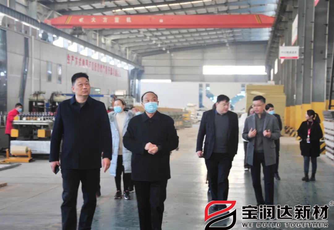 在寶潤達總部生產車間,劉總向王部長一行人詳細介紹了企業發展歷程以及企業舊城改造、工業圍護、冷鏈系統、潔凈抗疫系統等方面所取得的成就,王部長一行人對寶潤達企業生產、管理、技術人員等工作情況有了深入了解。
